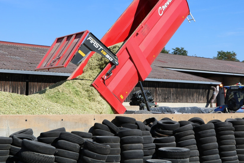 Le silo a une contenance de 500 m3, les produits ensilés seront tassés un maximum avant d’être recouvert d’une bâche. Alors le processus de fermentation va pouvoir démarrer. Il faudra environ une bonne demi-journée pour couper les 12 ha de maïs.